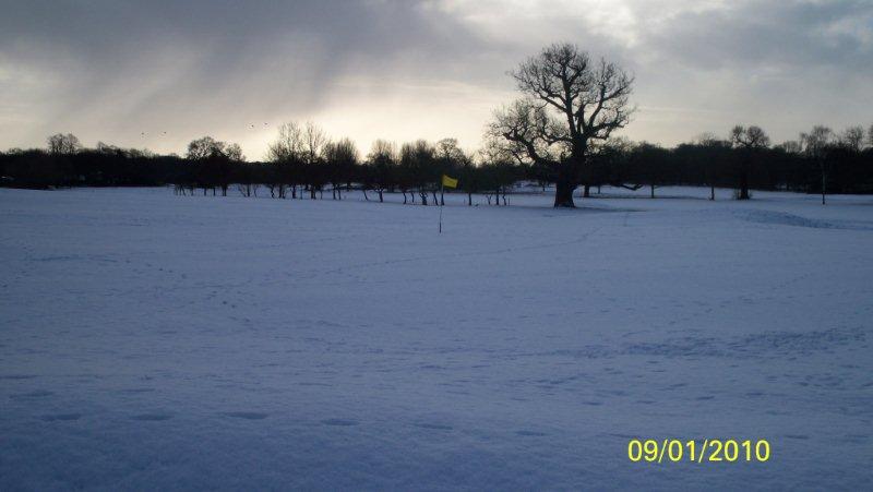 No play was possible due to snow covering the course.